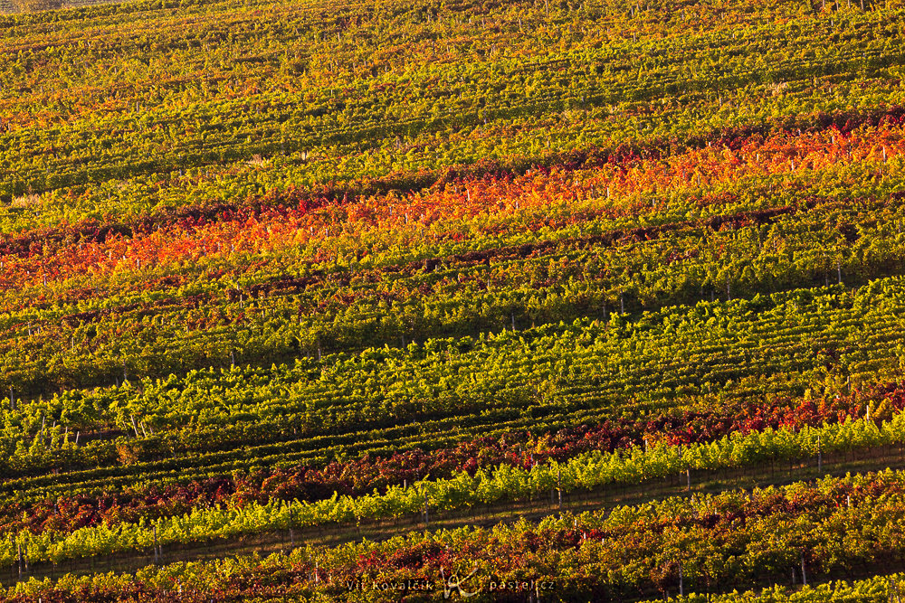 And it’s not just trees that change color. For example, in South Moravia, vineyards also turn shades of red and gold. Their tidy rows contrast beautifully with the irregular shapes of the surrounding landscape, and look great both from above and up close.