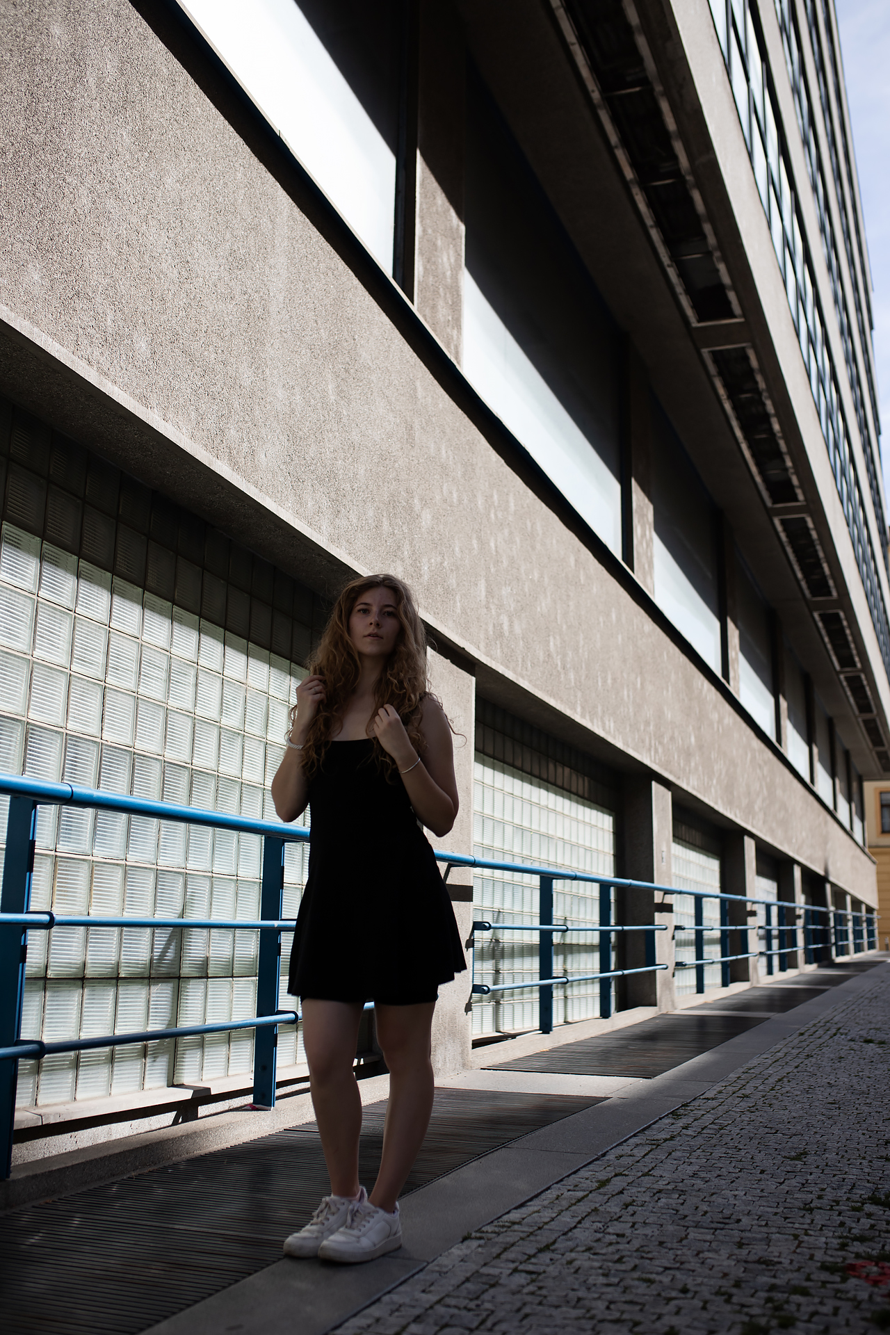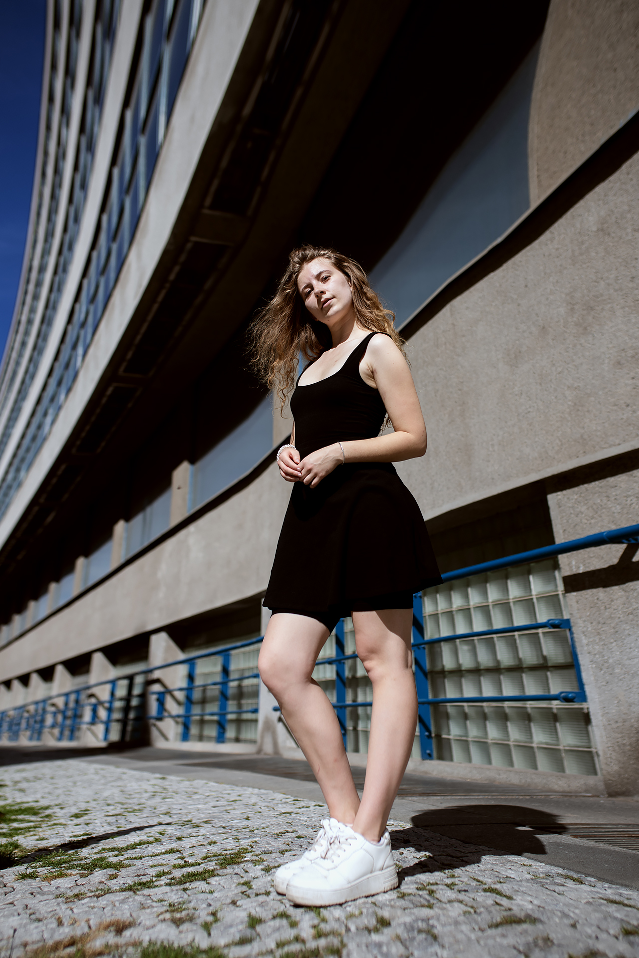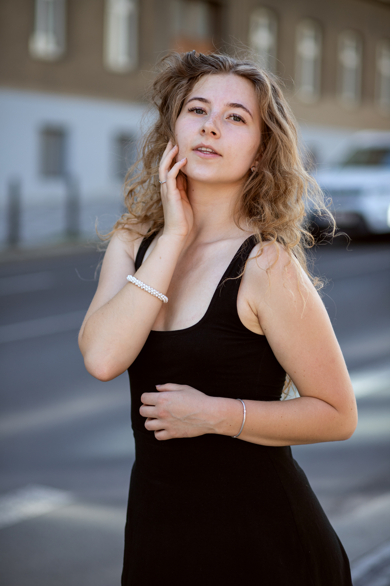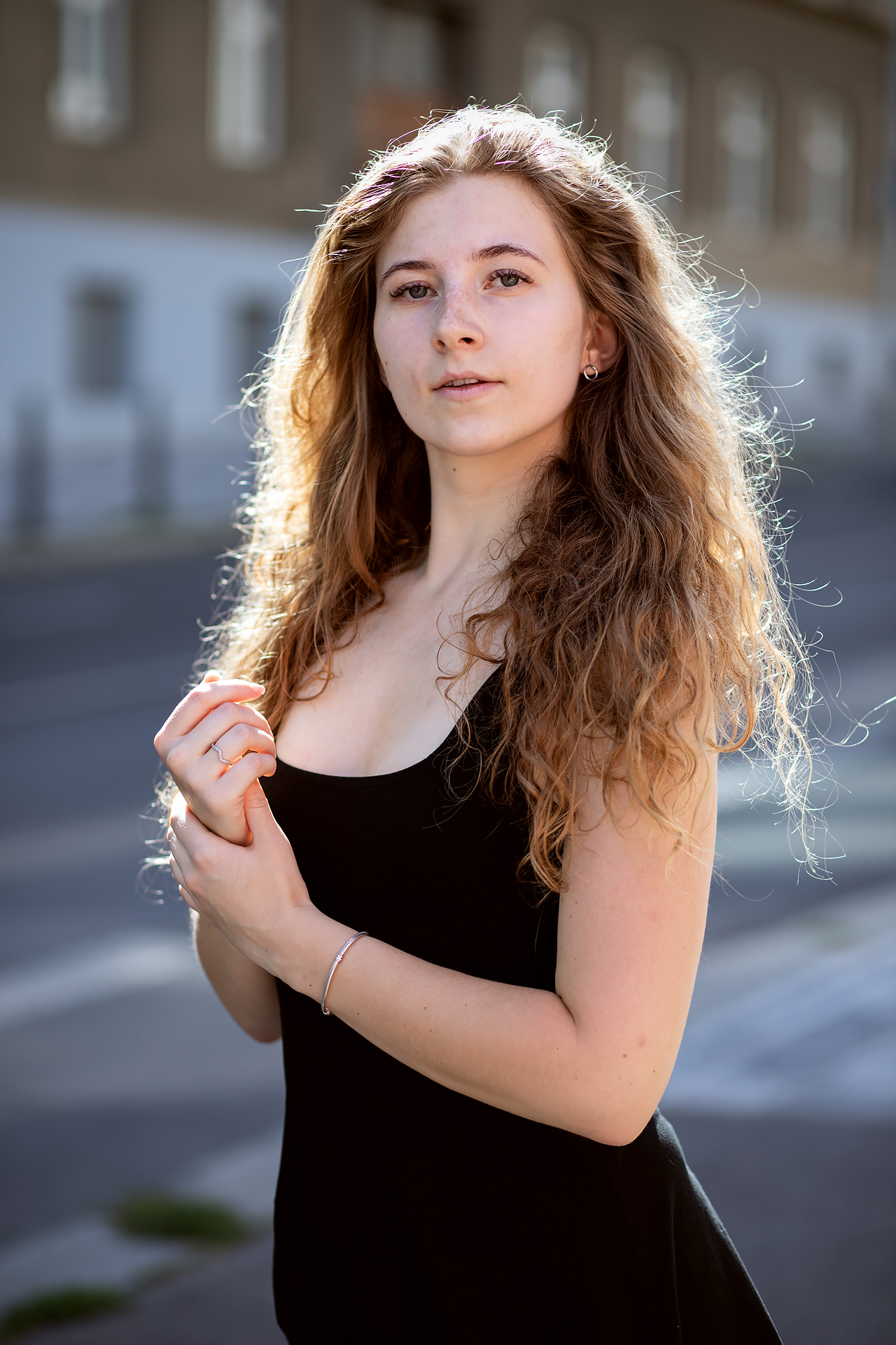 I met Adela in the afternoon, when the sun was still very high. Veletržní Street in Prague, where we began, isn’t exactly a photographer’s paradise. Heavy traffic, parked cars, and tall buildings. But we still found a way to work with the light.