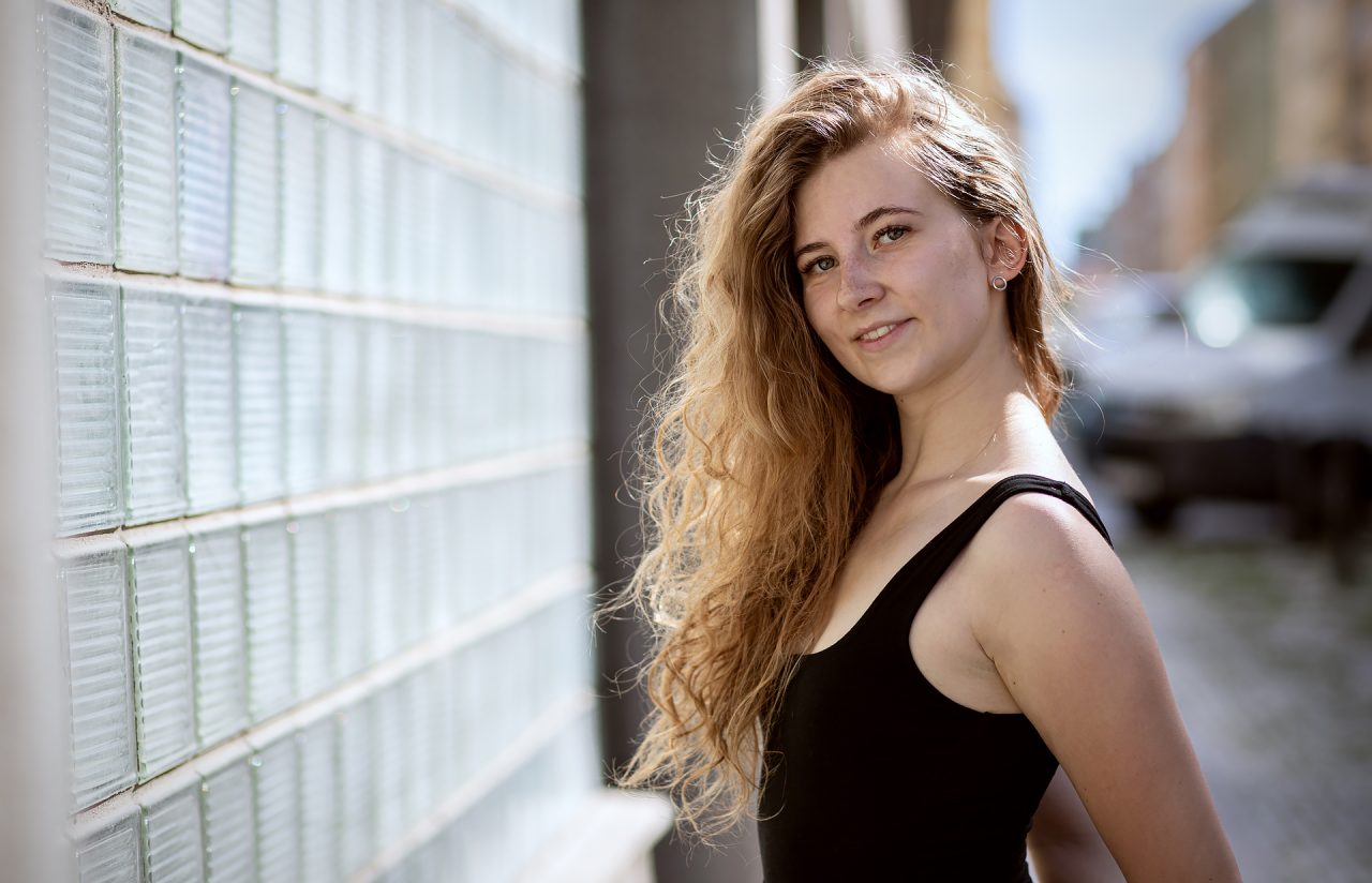 Even harsh sunlight can be tamed, it just takes some care. Avoid having your model face the sun directly, since it makes them squint. Instead, shift the sun slightly to the side or shoot from below, with the light coming from above. Hard light has one advantage: it accentuates textures, skin, hair, or even architecture in the background in a completely different way than soft light. Plus, you can have fun playing with dramatic shadows.