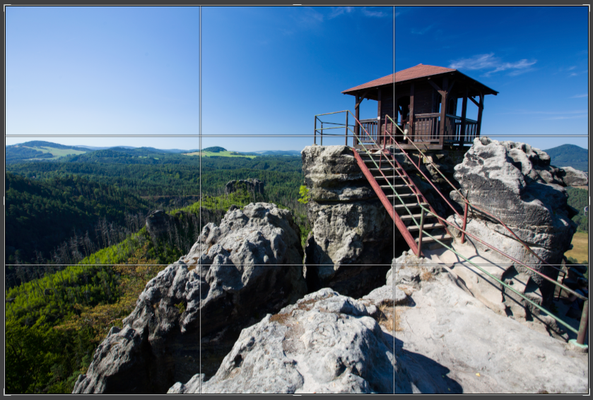 The Grid overlay is also very useful, even if not directly used for composition. You can use it to correct the rotation of the image, which makes it much easier to straighten a tilted horizon.