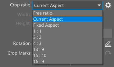 How do I change the aspect ratio? In Zoner Studio, select a Fixed Aspect (such as 1:1, 3:2, or 16:9) or use Free ratio and set the crop manually.