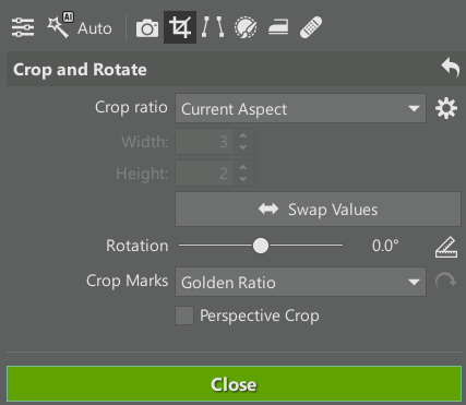 The Crop and Rotate tool includes several important settings, which we look at next.