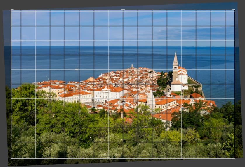 The Grid overlay is also very useful, even if not directly used for composition. You can use it to correct the rotation of the image, which makes it much easier to straighten a tilted horizon.