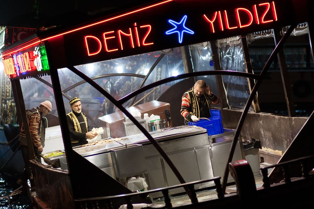 The cooks on the rocking Turkish ship are strongly lit by a nearby light source, which gives them overly saturated colors. Color Shift helps reduce this saturation.