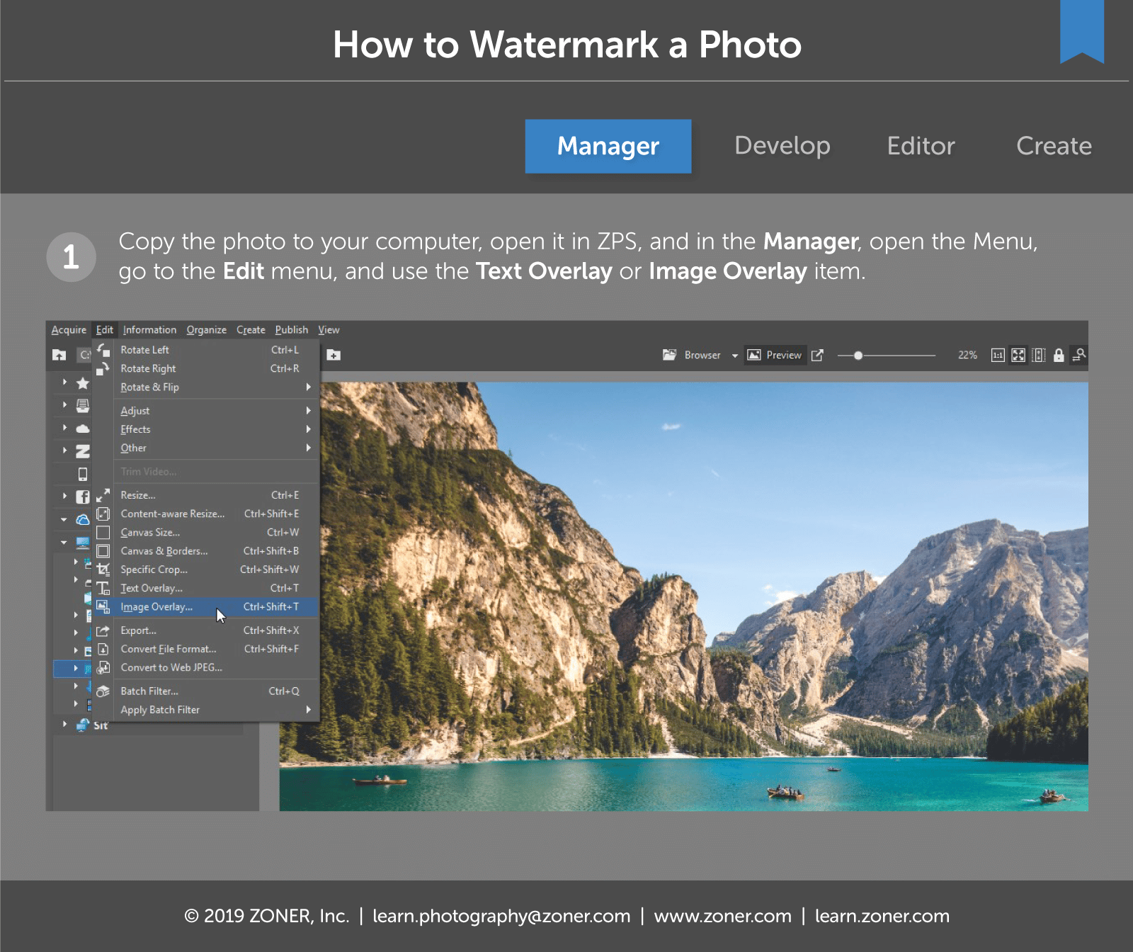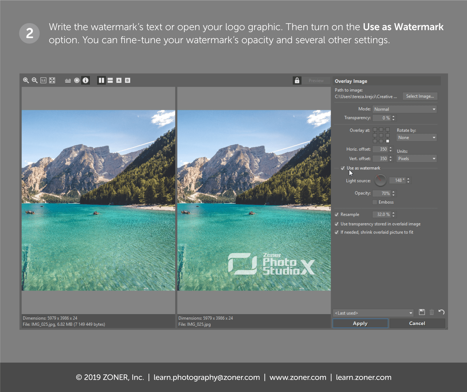 No matter whether you want to give your photo a text watermark or an image watermark, it’s easier in Zoner Studio. We’ll show you how.