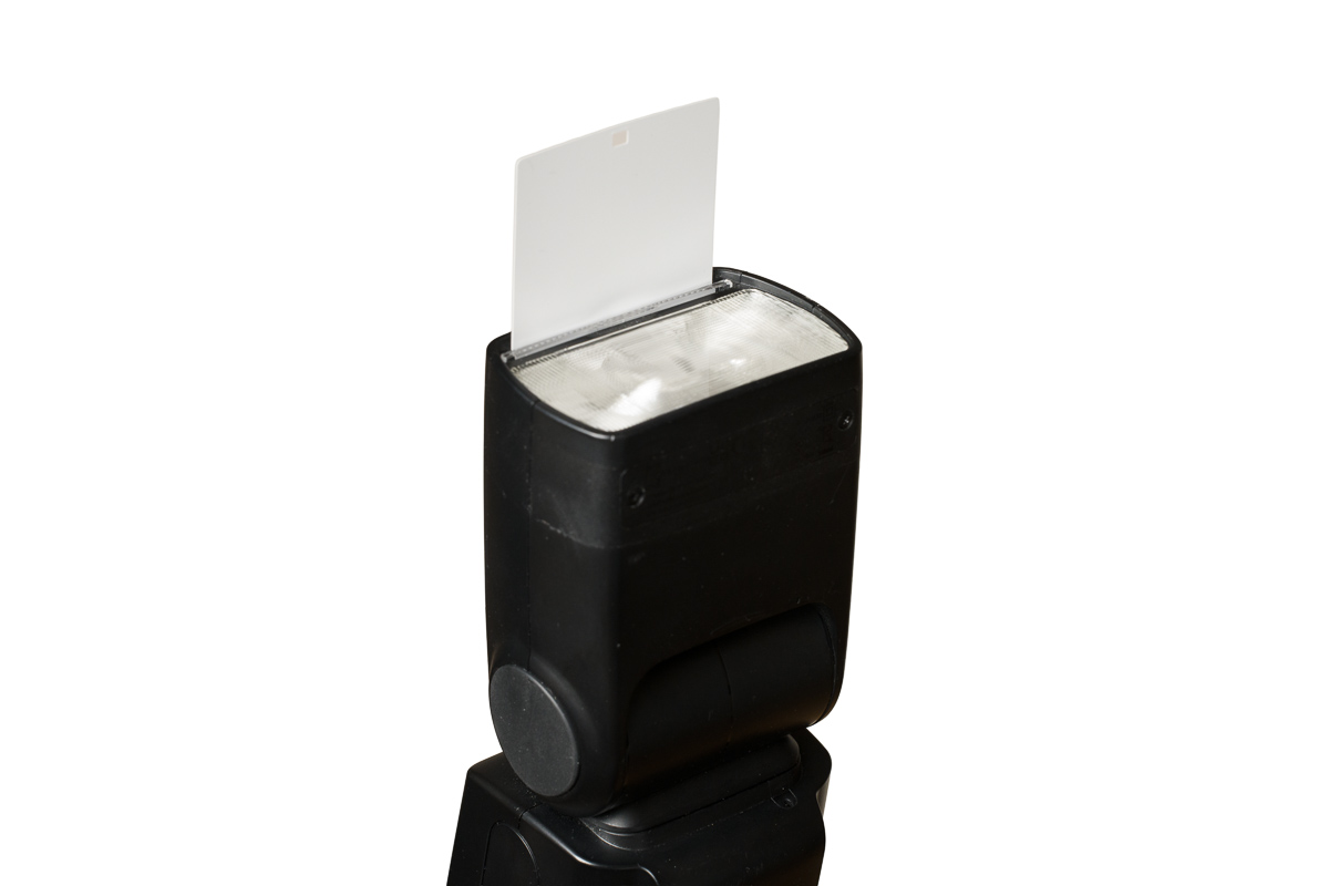 Bouncing light off the ceiling has one drawback: the lower part of the face can fall into shadow, and the eyes may lack sparkle. The solution is simple—use a flash reflector attached to the top of the flash, which redirects part of the light forward.