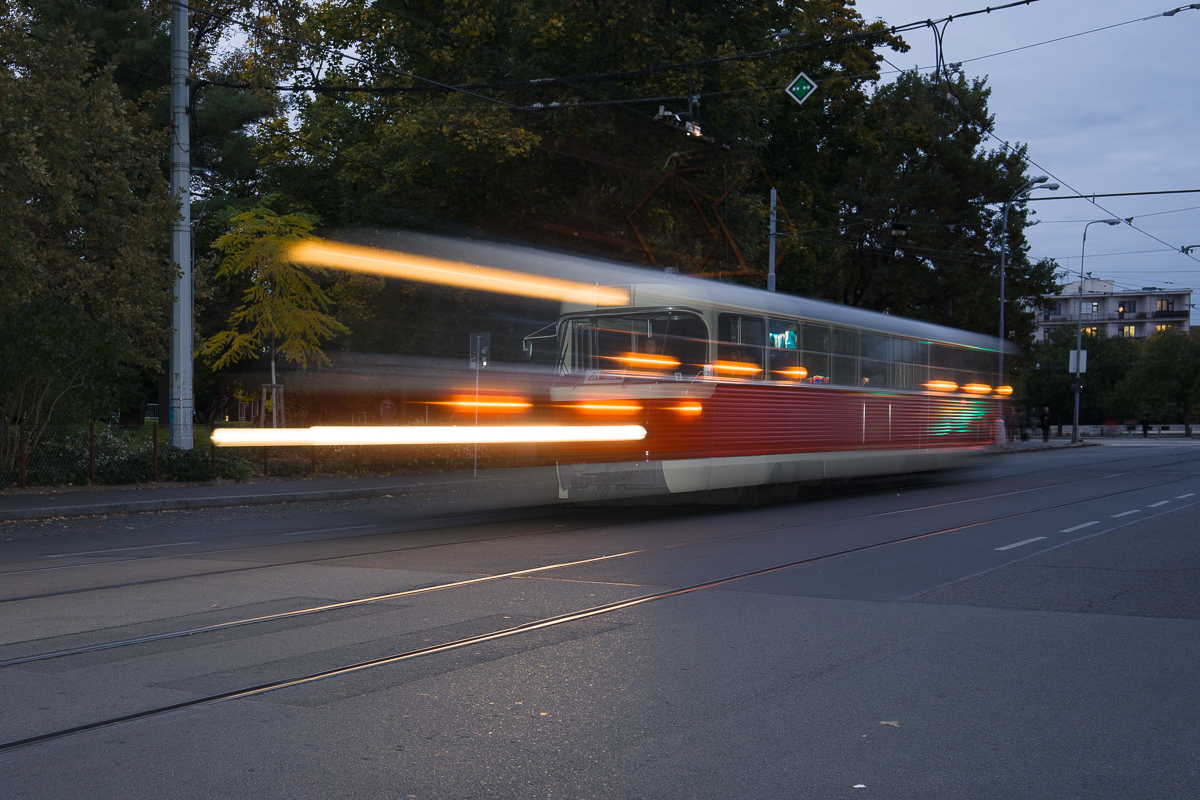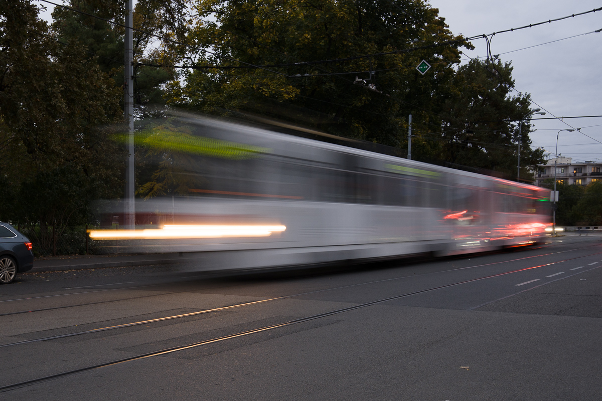 For comparison, here’s the tram without flash, which is blurred beyond recognition: