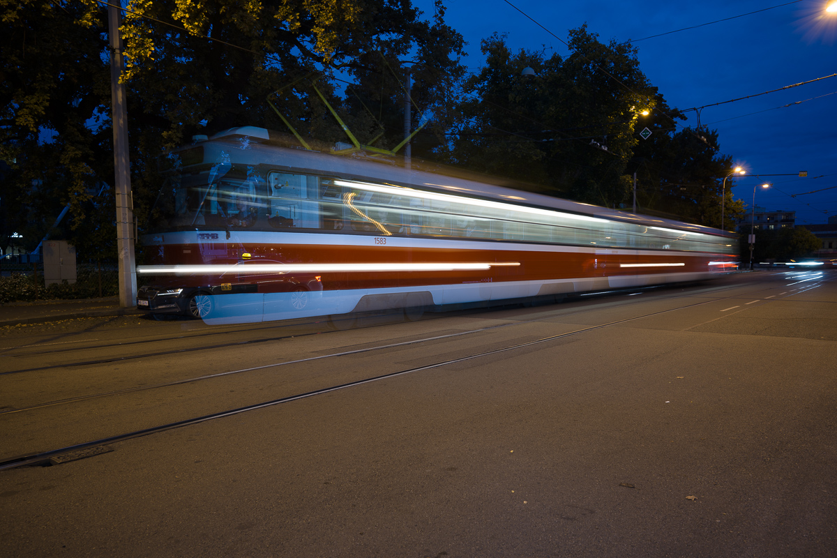 For comparison, here’s the tram without flash, which is blurred beyond recognition: