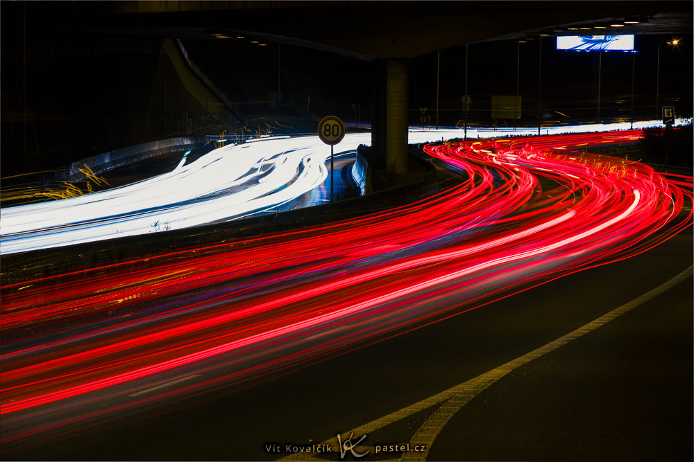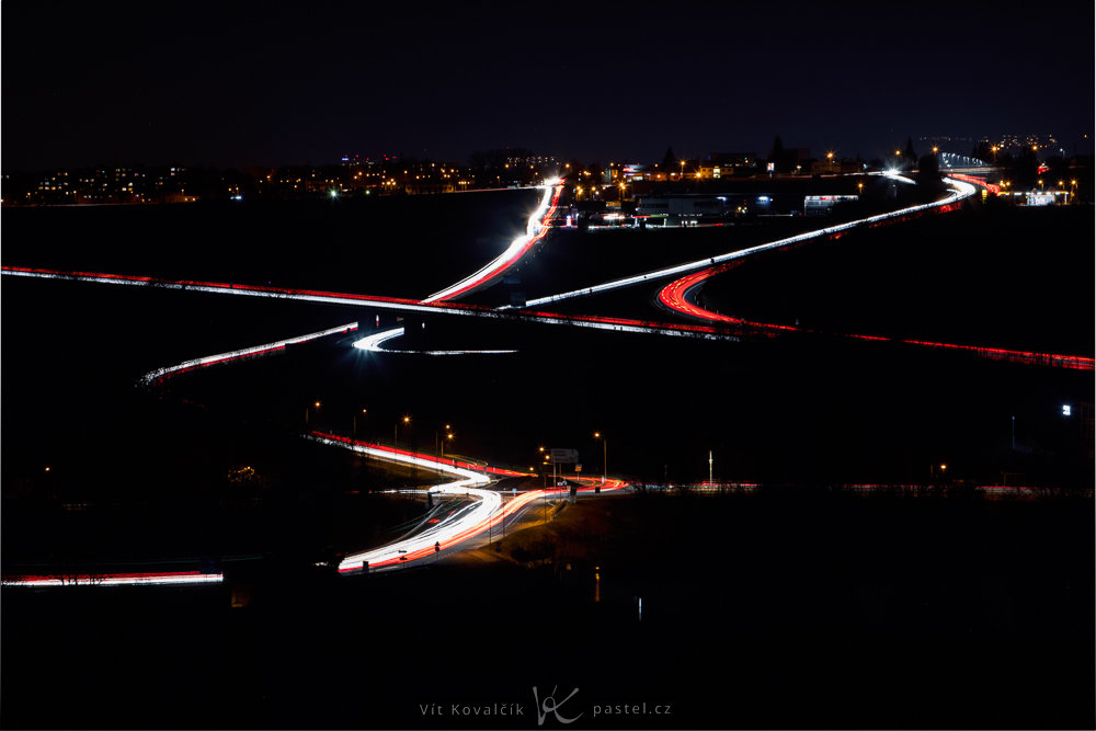 Light trails photographed at car level are usually not very interesting. The lines tend to merge and converge in a narrow corridor in the center of the image.