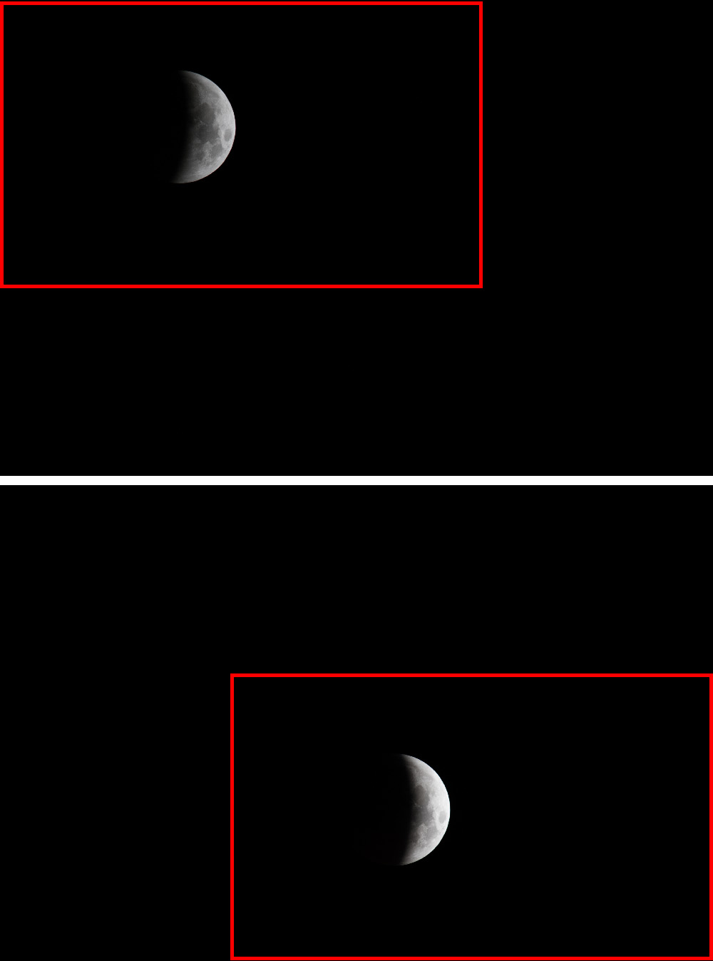 Sometimes you’re lucky enough to witness a lunar eclipse. The part of the Moon in shadow is typically very dark, so taking many shots helps capture enough image data to brighten the result.