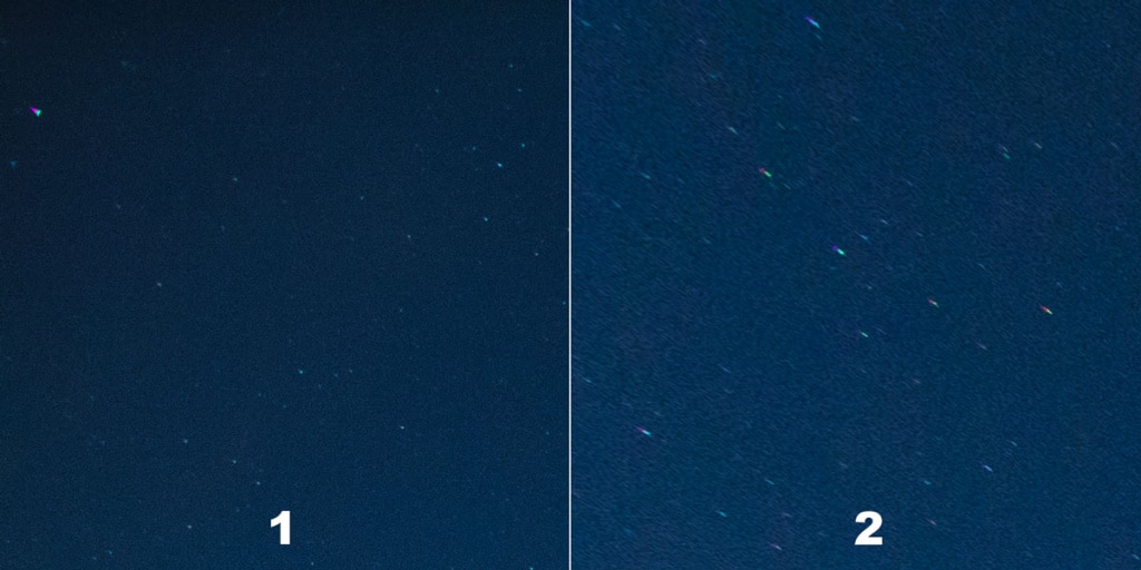 I wrapped up by testing this lens during star photography. Here the short focal length let me use longer exposure times and get a larger part of the sky into the frame. Unfortunately, the full moon got in the way of photographing the Milky Way. All the same, I was surprised by how the stars retained their relatively “round” shapes even at the edges of the picture; however, that only applied until I used distortion correction in the Editor in Zoner Studio; correction swiftly stretched them out, as you can see in the detail of the top left corner.